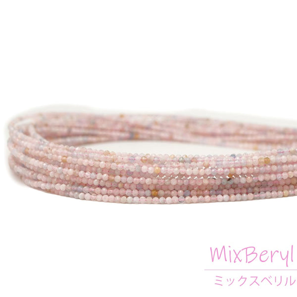 ミックスベリル 2mm 丸玉ファセット ビーズ 連売り 約38cm モルガナイト 緑柱石 天然石 パワーストーン 連 石 丸 手芸 手作り 資材 ハンドメイド アクセ パーツ 2ミリ
